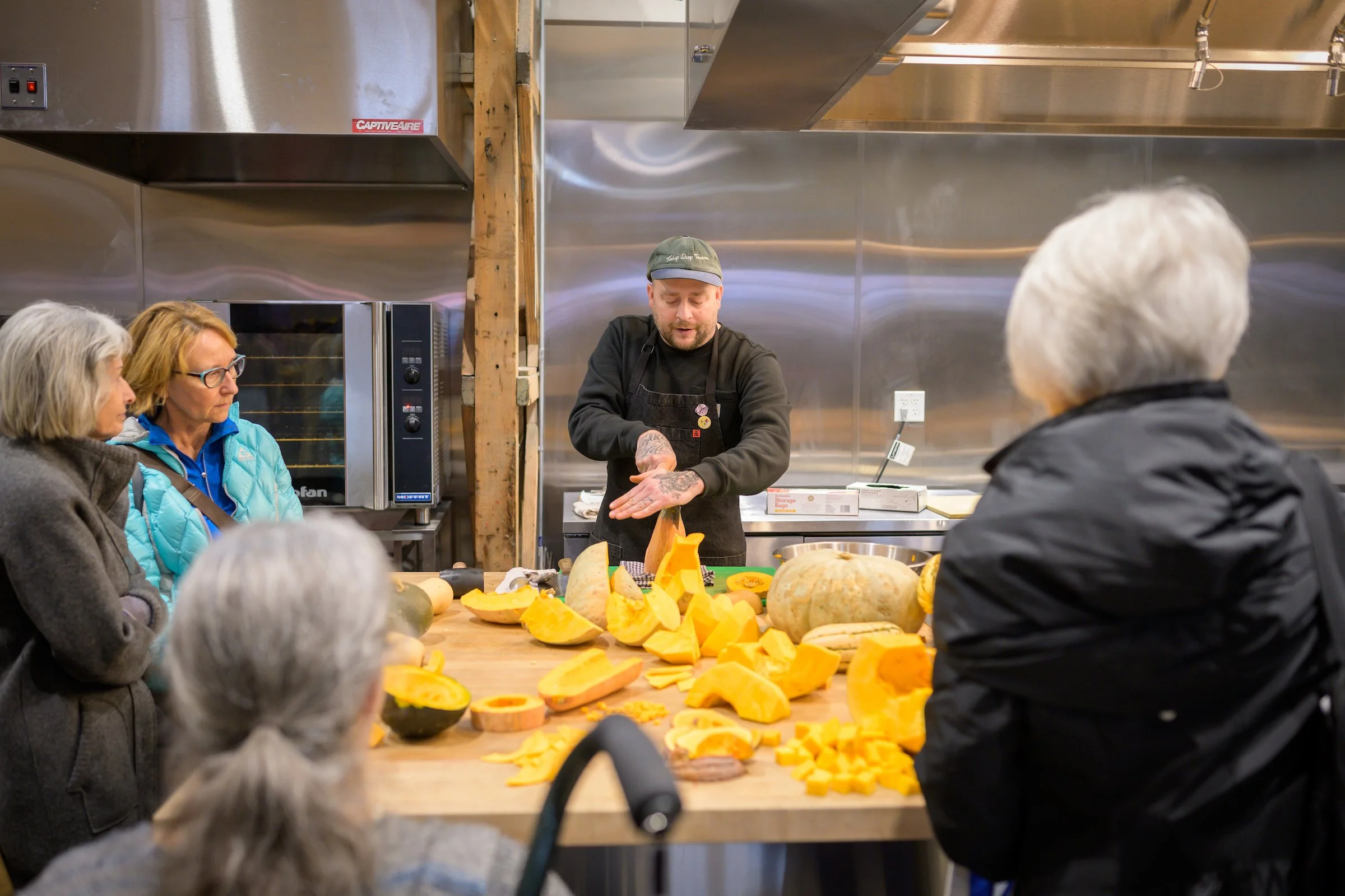 Hands-on highlights include a winter squash butchery demonstration station—where visitors can learn how to break down large or unfamiliar squash—and the beloved #cucurbitcuddles photo booth. Together, these experiences help build confidence in the kitchen while honoring the seeds and growers behind the harvest.